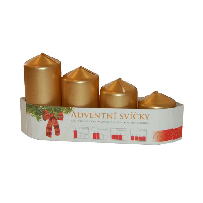Svíčky válec - zlaté metalické kat.č:72708EAN:8594017672708Skladem:NEmin.odběr:1 bal po 4 ksVelikost:5 x 6 ; 7,5; 9; 10,5 cm Výrobce:Jula Sada adventních svíček - válec.Barva: zlatá metalická.