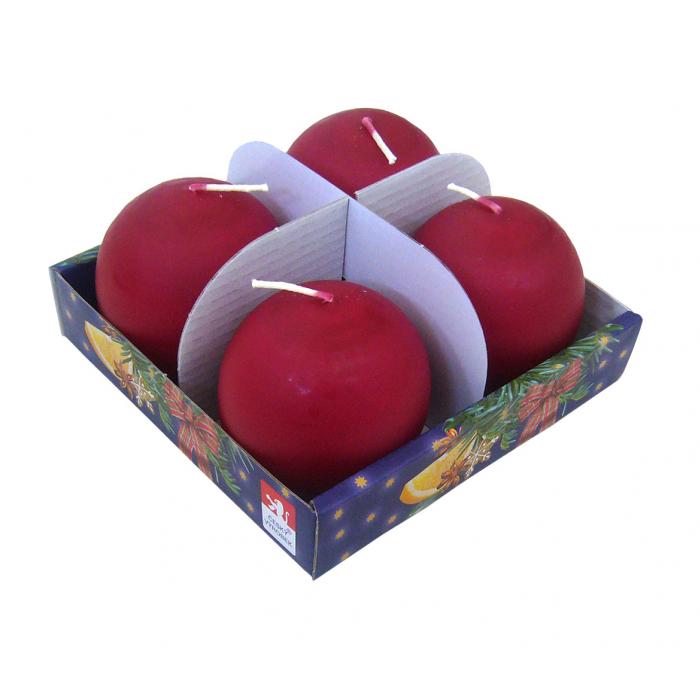 Svíčky koule - vínové kat.č:78601EAN:8594017678601Skladem:NEmin.odběr:1 bal po 4 ksVelikost:6 cm Výrobce:Jula Sada adventních svíček - koule.Barva: vínová.