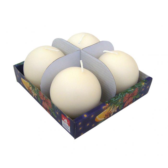 Svíčky koule - krémové kat.č:78571EAN:8594017678571Skladem:NEmin.odběr:1 bal po 4 ksVelikost:6 cm Výrobce:Jula Sada adventních svíček - koule.Barva: krémová.