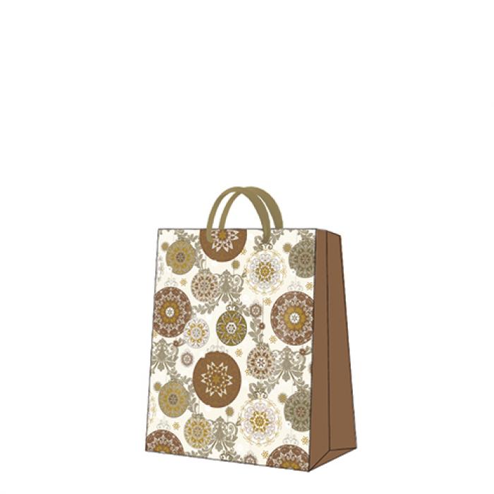 Prémium: vysoce kvalitní taška s třpytky nebo metalickým efektem a rukojetí ze saténové stuhy.