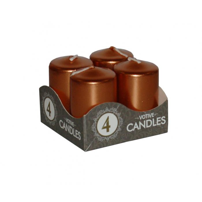 Svíčky malý válec - měděné metalické kat.č:13693EAN:5908260613693Skladem:NEmin.odběr:1 bal po 4 ksVelikost:4 x 8 cm Výrobce:Jula Sada adventních svíček - válec.Barva: měděné metalická.