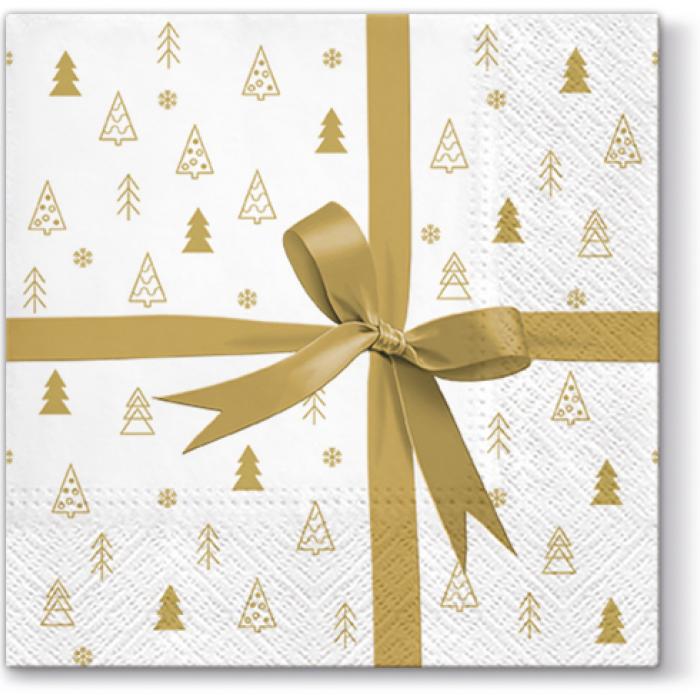 Papírové vánoční ubrousky Paw z kolekce Gift - zlaté, 33 x 33 cm, třívrstvé.