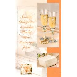 Svatební přání 19 x 11,5 cm, ražba, text uvnitř, kapsa na peníze.