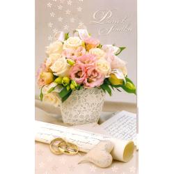Svatební přání 19 x 11,5 cm, ražba, text uvnitř.