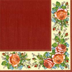 Papírové ubrousky Pol-Mak Vintage Roses Claret, 20 ubrousků, třívrstvé, 33x33cm.