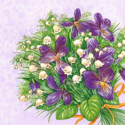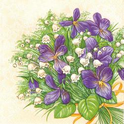 Papírové ubrousky Pol-Mak: Violets & Snowdrops, 20 ubrousků, třívrstvé, 33x33cm.