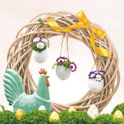 Velikonoční papírové ubrousky Pol-Mak z kolekce Easter Wreath with Ceramic Cock, 20 ubrousků, třívrs...