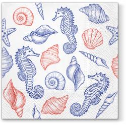 Papírové ubrousky Paw TeTe: Seahorses and Shells, 20 ubrousků, třívrstvé, 33x33cm.