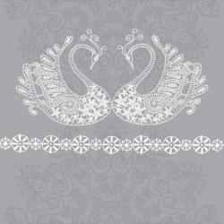 Papírové svatební ubrousky Paw TeTe: Wedding Swan, 20 ubrousků, třívrstvé, 33x33cm.
