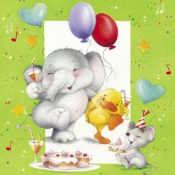 Papírové ubrousky Paw TeTe: Elephant and Friends, 20 ubrousků, třívrstvé, 33x33cm.