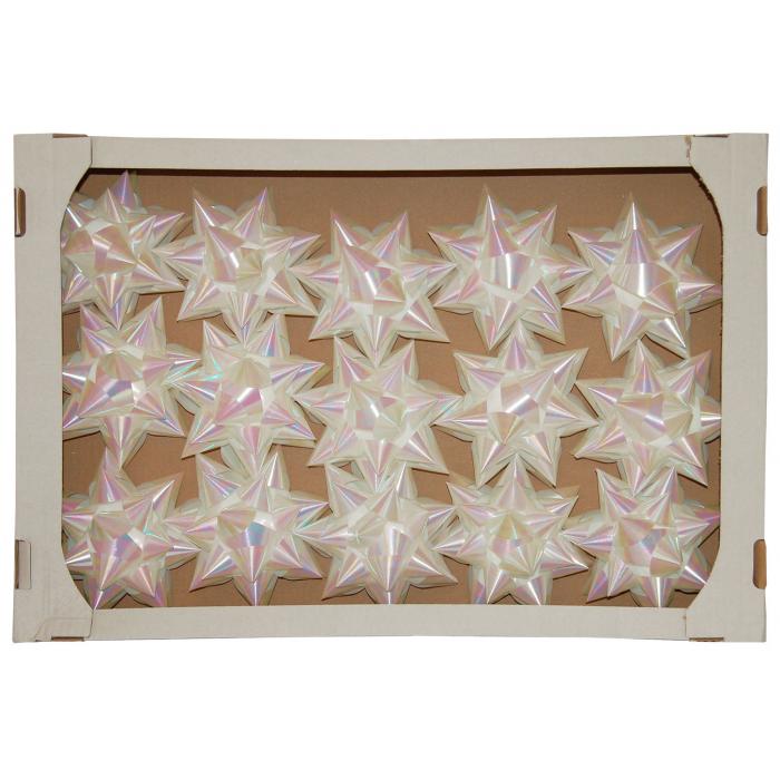 Rozeta Maxi perleťová - bílá 15 ks kat.č:Opal - bíláEAN:590454282500Skladem:NEmin.odběr:1 bal po 15 ksVelikost:Ø 15,5 cm Výrobce:Navia Perleťová rozeta Maxi.Počet rohů 22, šířka stuhy 3 cm.Balení obsahuje rozetu v bílé barvě.Ruční výroba.