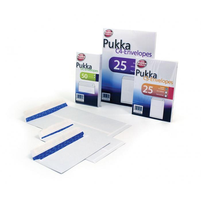 Obálka Pukka C5 bílá kat.č:C5ENVW25EAN:0Skladem:NEmin.odběr:1 bal po 25 ksVelikost:C5 Výrobce:Pukka Obálka C5, bílá, s lepícím proužkem, 90GSM.