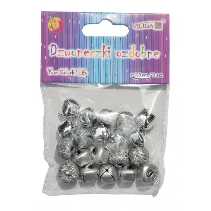 Ozdobné rolničky - stříbrné 1,5 cm kat.č:DZW-1643EAN:5902150641643Skladem:ANOmin.odběr:1 balVelikost:1,5 cm / 20 ks Výrobce:Aliga Dekorační rolničky, stříbrné.1,5 cm, balení obsahuje 20 ks.