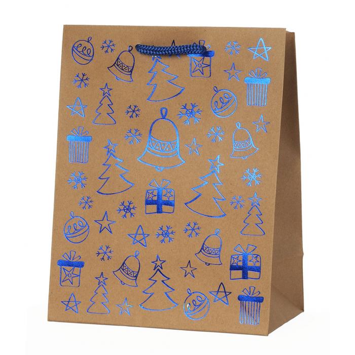 Vánoční papírová taška kraft. Balení obsahuje 12 ks. Mix motivů.