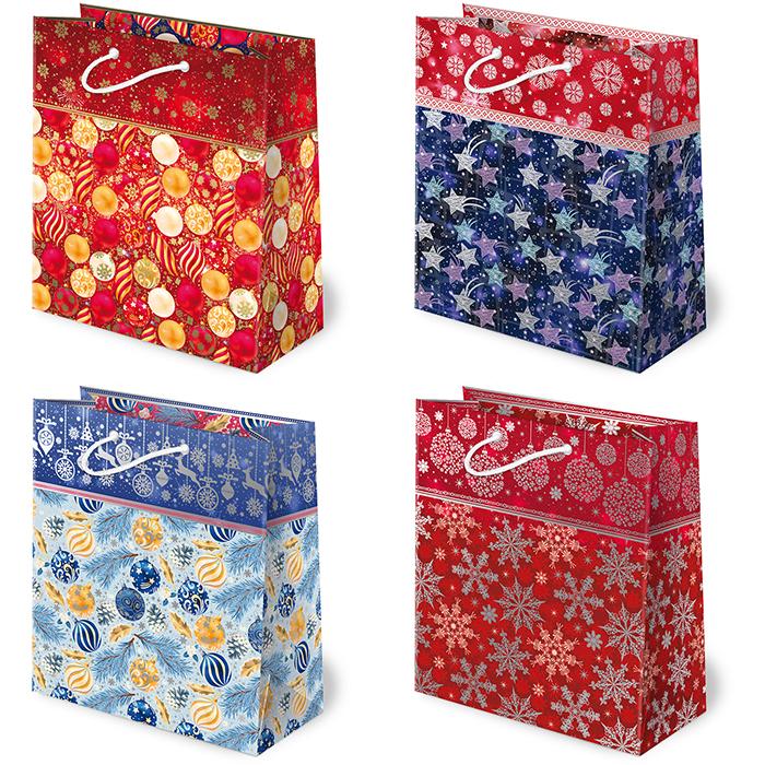 Vánoční papírová taška PAW s.c. T-8L sestava 11 střední kat.č:T-08L s. 11EAN:0Skladem:NEmin.odběr:1 bal po 10 ksVelikost:24 x 20 x 11 cm Výrobce:PAW s.c. Vánoční papírová taška, balení obsahuje mix 10ks.