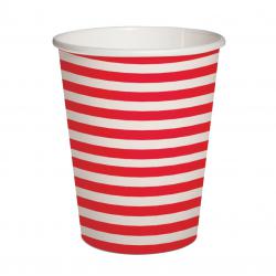 Papírové kelímky Stripes červené, obsah 250ml, balení obsahuje 10ks.