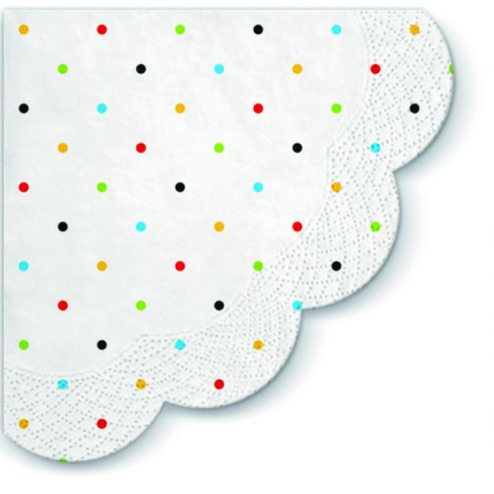 Papírový ubrousek Colorful Dots kat.č:SDR 120127EAN:0Skladem:NEmin.odběr:1 bal po 12 ksVelikost:Round Výrobce:Paw Papírové ubrousky Paw: Colorful Dots, 12 ubrousků, třívrstvé, ø32cm.