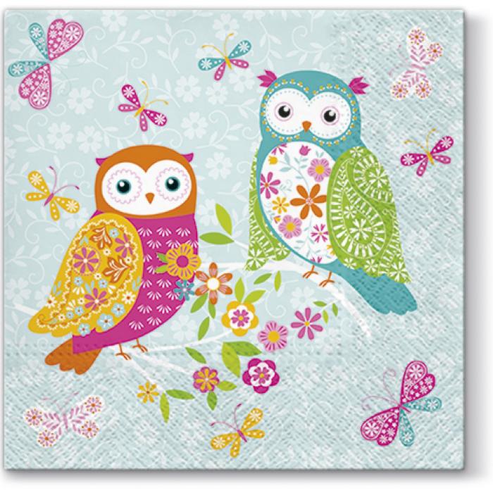 Papírové ubrousky Paw: Magical Owls, 20 ubrousků, třívrstvé, 33x33cm.