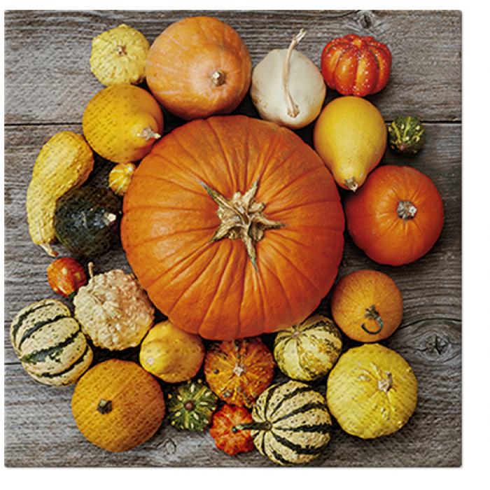 Papírové ubrousky Pumpkin Composition kat.č:SDL 127300EAN:0Skladem:NEmin.odběr:1 bal po 20 ksVelikost:Lunch Výrobce:Paw Papírové ubrousky Paw: Pumpkin Composition, 20 ubrousků, třívrstvé, 33x33cm.