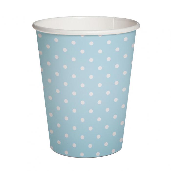 Papírové kelímky Dots Light blue, obsah 250ml, balení obsahuje 10ks.