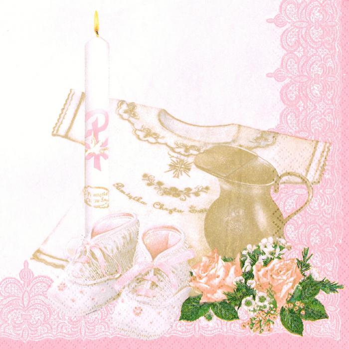 Papírové ubrousky Pol-Mak: Christening Composition, růžové, 20 ubrousků, třívrstvé, 33x33cm.