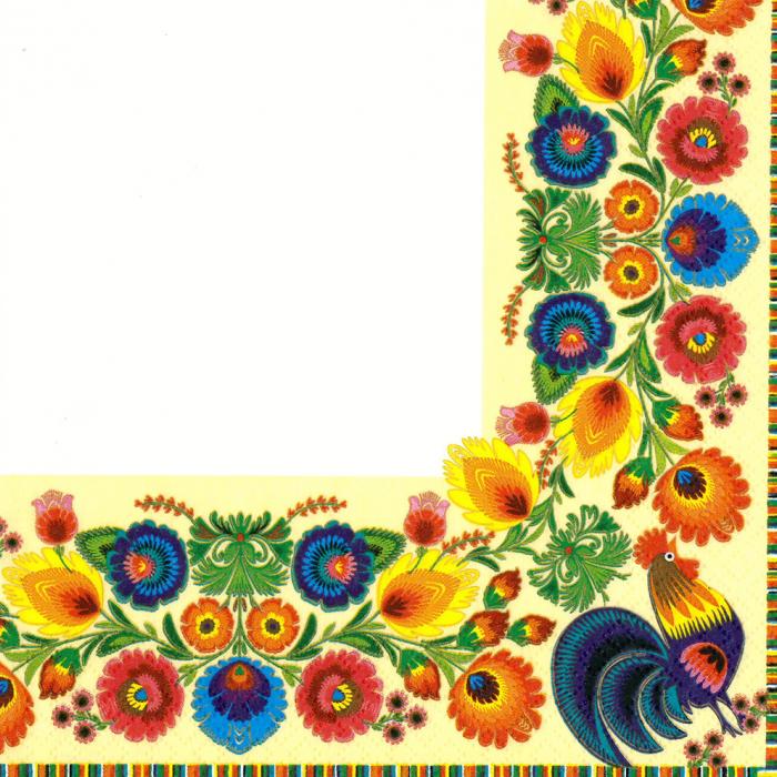 Papírové ubrousky Pol-Mak: Folk Frame White & Cream, 20 ubrousků, třívrstvé, 33x33cm.