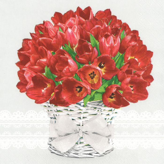 Papírový ubrousek Red Tulips in Wicker Flowerpot SDWI 006301