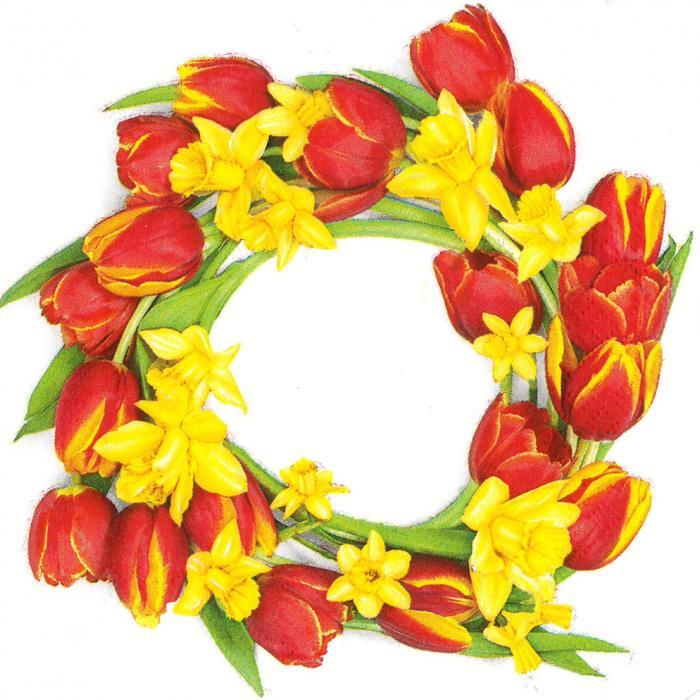 Papírové ubrousky Pol-Mak Daisy: Red Tulips Wreath,20 ubrousků, třívrstvé, 33x33cm.