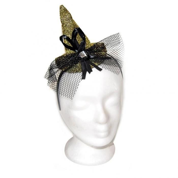 Párty čelenka s kloboukem kat.č:880348EAN:8590331246786Skladem:NEmin.odběr:1 ksVelikost:12 cm Výrobce:Wiky Čarodějnický klobouk, 12 cm. Několik různých provedení.