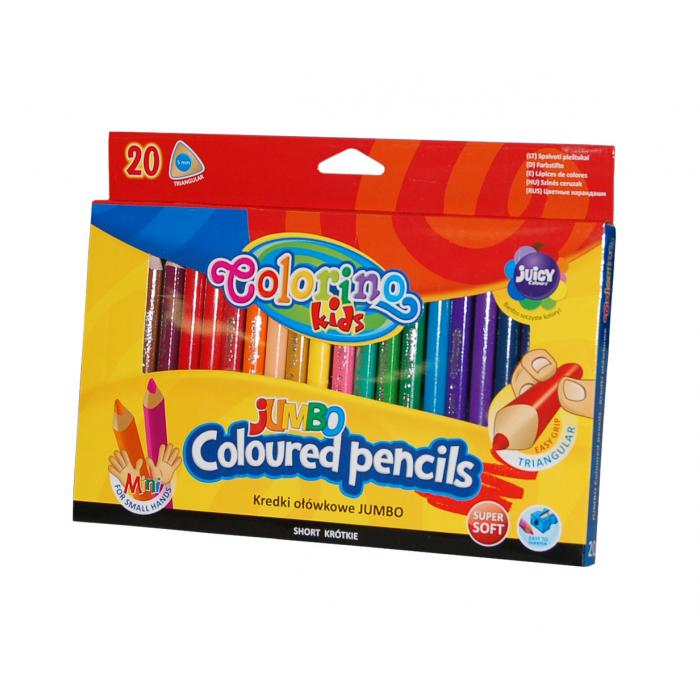 Trojhranné pastelky 20ks. Mini Jumbo (6,5 cm) s ořezávátkem.