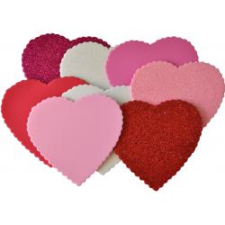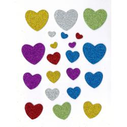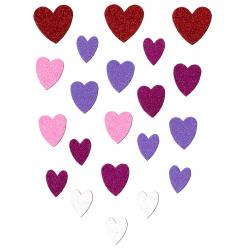 Dekorační pěnová samolepka s brokátem ve tvaru srdce, 64 ks.
