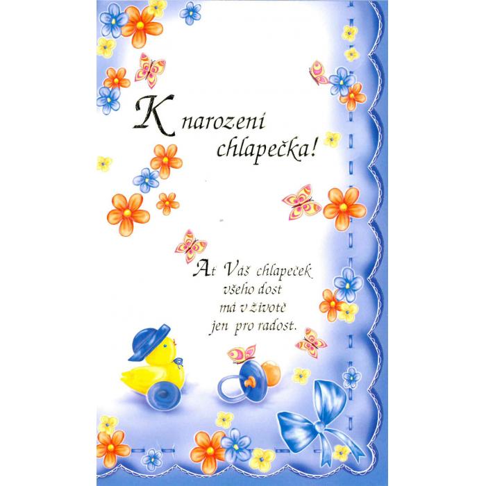 Přání k narození chlapečka MIX kat.č:NEAN:0Skladem:ANOmin.odběr:1 bal po 10 ksVelikost:19 x 11,5 cm Výrobce:Mezuza Přání velké mix motivů 19 x 11,5 cm, s textem.