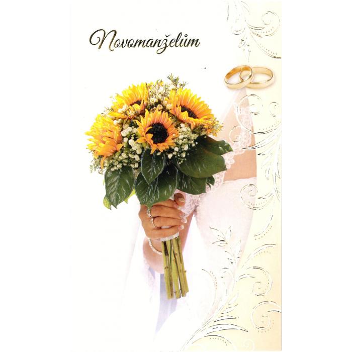 Svatební přání 19 x 11,5 cm, ražba, slepotisk, text uvnitř.