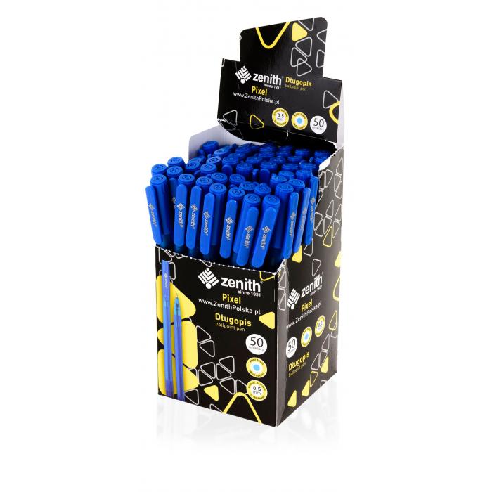 Propiska Zenith Pixel - modrá kat.č:201318016EAN:5901137113043Skladem:NEmin.odběr:1 bal po 50 ksVelikost:0,5 mm Výrobce:Zenith Jednorázová propiska Zenith Pixel.Barva tuhy - modrá.Balení obsahuje 50 ks.