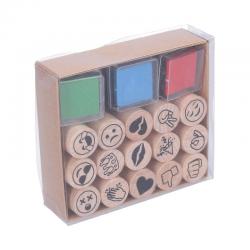 Dekorační dřevěná razítka s 3 barevnými poduškami.