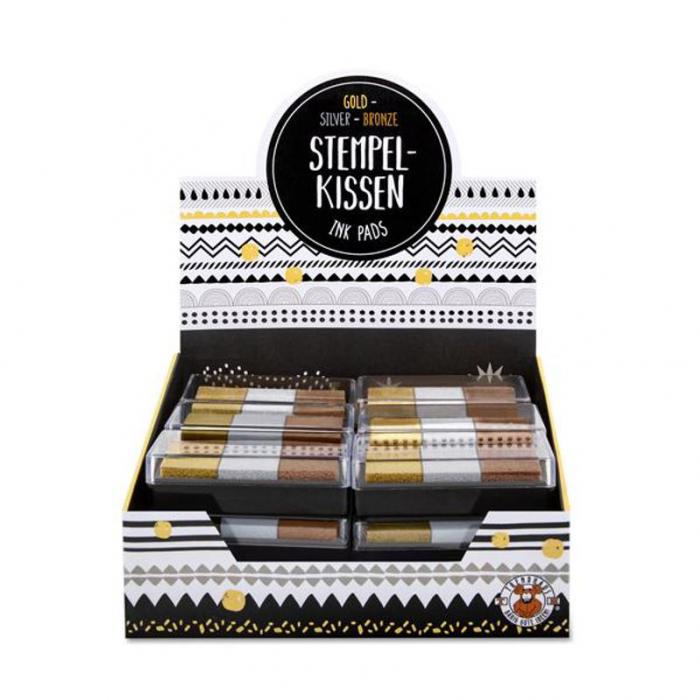 Metalická poduška na razítka s 3 barvami (stříbrná, zlatá, broznová).