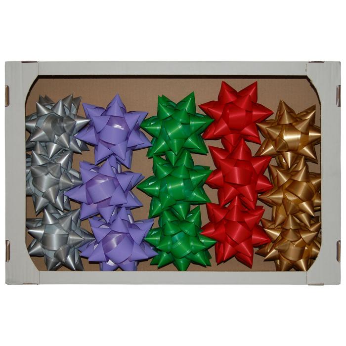 Rozeta Maxi hladká MIX 15 ks kat.č:21640EAN:0Skladem:ANOmin.odběr:1 bal po 15 ksVelikost:Ø 15,5 cm Výrobce:Navia Hladká rozeta Maxi.Počet rohů 22, šířka stuhy 3 cm.Balení obsahuje mix barev.