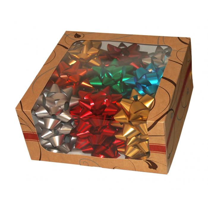 Rozeta v boxu R 20 - mirmat kat.č:R 20 box metal matEAN:5904542823118Skladem:NEmin.odběr:1 bal po 27 ksVelikost:Ø 10 cm Výrobce:Navia Dekorační mirmatová rozeta R20 v krabičce, mix barev.Průměr: 10 cmŠířka stuhy: 2 cmBalení: 27 ks