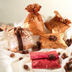 Mix sáčků Rosy v barvách červné, černé, oranžové, stříbrné.