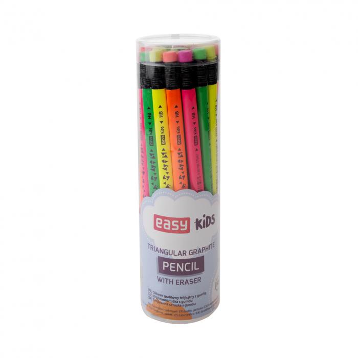 Trojhranná tužka s gumou - fluo kat.č:837349EAN:5901180373487Skladem:ANOmin.odběr:1 bal po 24 ksVelikost:24 ks Výrobce:Easy Tužka jumbo s grafitovou tuhou a pryží.Barva: fluoTvrdost: HB, tužka se osvědčí jak během psaní, tak kreslení.