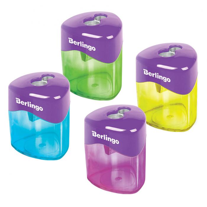 Plastová odpadní nádobka a celokovové ořezávátko s dvěma otvory.