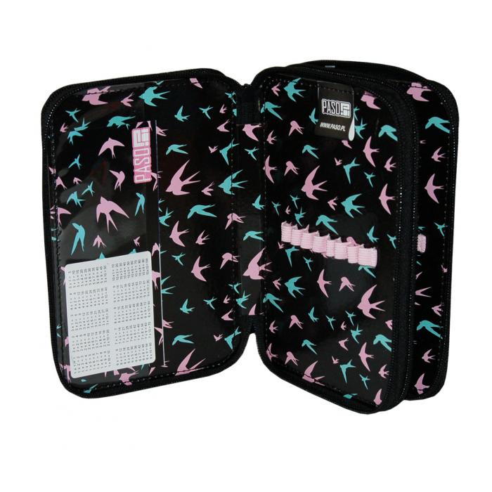 Školní penál Paso - vlaštovky, 2 zipy, bez vybavení.