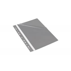 Rychlovazač A4 s euroděrováním, průhlednou přední stranou, v šedém provedení.
