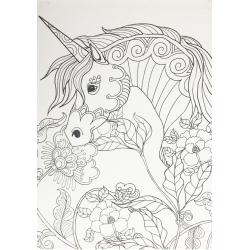 Malířské plátno s předtiskem jednorožče, velikost A4.