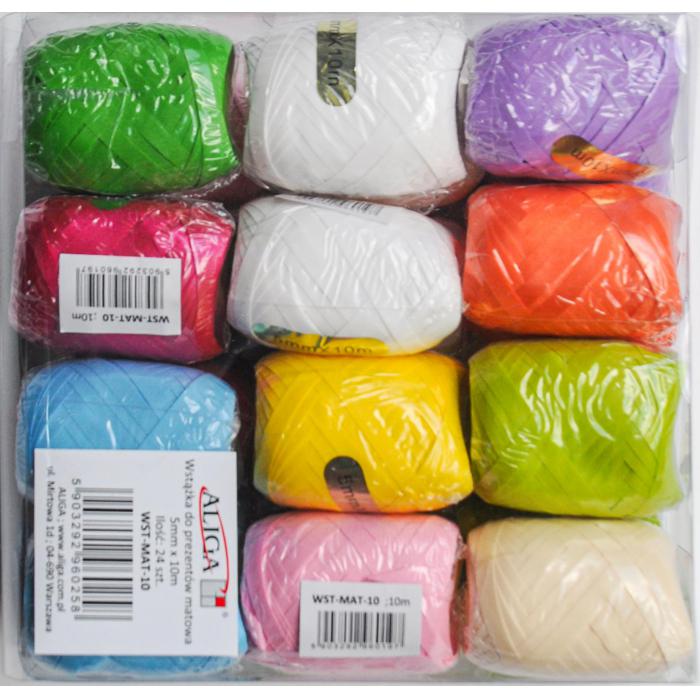 Stuha matná, 5 mm x 10 m, balení obsahuje 24 ks. Mix barev.