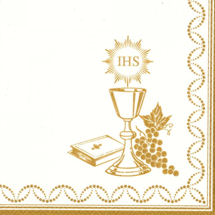 Papírový ubrousek Communion with Prayer Book kat.č:SLKO 000501EAN:0Skladem:NEmin.odběr:1 bal po 20 ksVelikost:Lunch Výrobce:Pol-Mak Papírové ubrousky Pol-Mak: Communion with Prayer Book, 20 ubrousků, třívrstvé, 33x33cm.