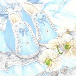 Papírové ubrousky Pol-Mak: Little Blue Shoes s motivem k narození dítěte, 20 ubrousků, třívrstvé, 33...
