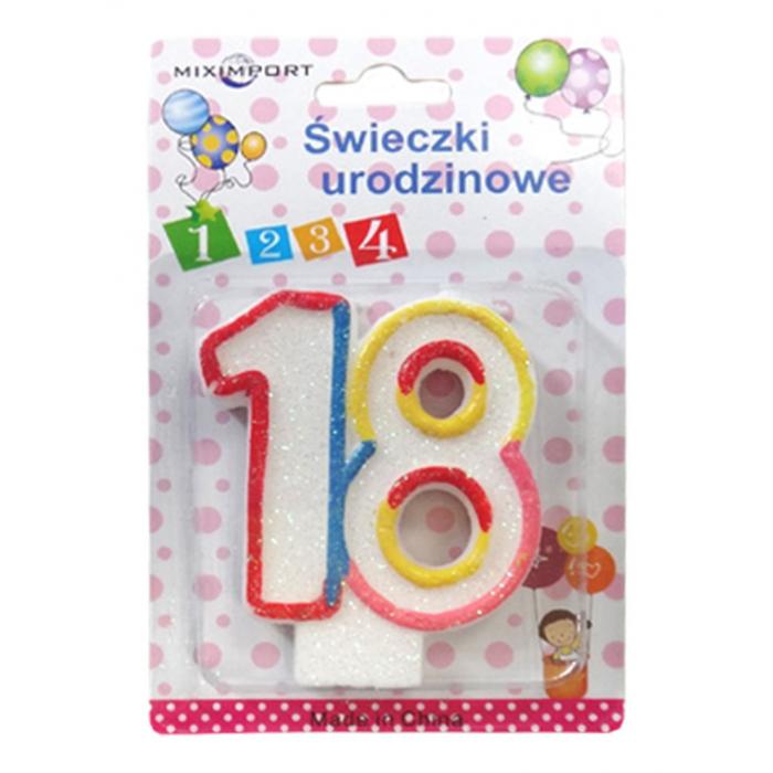 Dortová svíčka s barevným okrajem a brokátem, číslo 18.