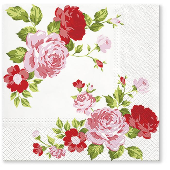 Papírové ubrousky Paw Tete: Roses Composition, 20 ubrousků, třívrstvé, 33x33cm.