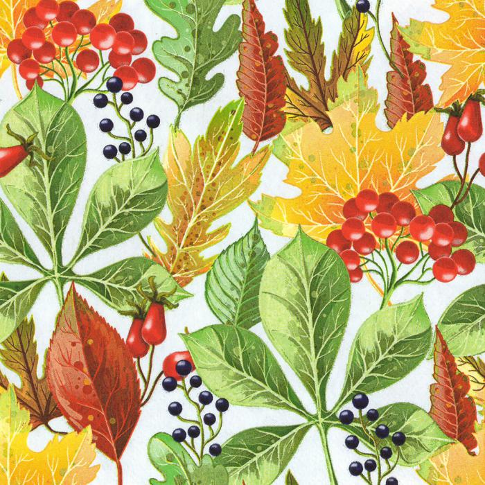 Papírové ubrousky Pol-Mak Daisy: Rowanberry and forest leaves, 20 ubrousků, třívrstvé, 33x33cm.